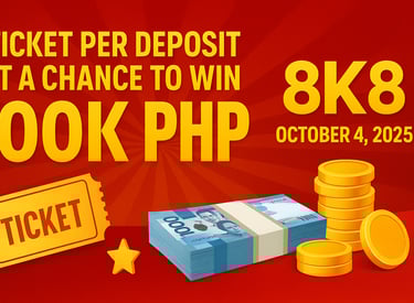 The 1 Ticket Per Deposit = Chance to Win ₱100,000 promotion at 8K8, launched October 4, 2025, is one of the most exciting opportunities of the season. With unlimited chances, transparent mechanics, and a jackpot prize that can change lives, it’s the perfect way to make deposits work harder for you.